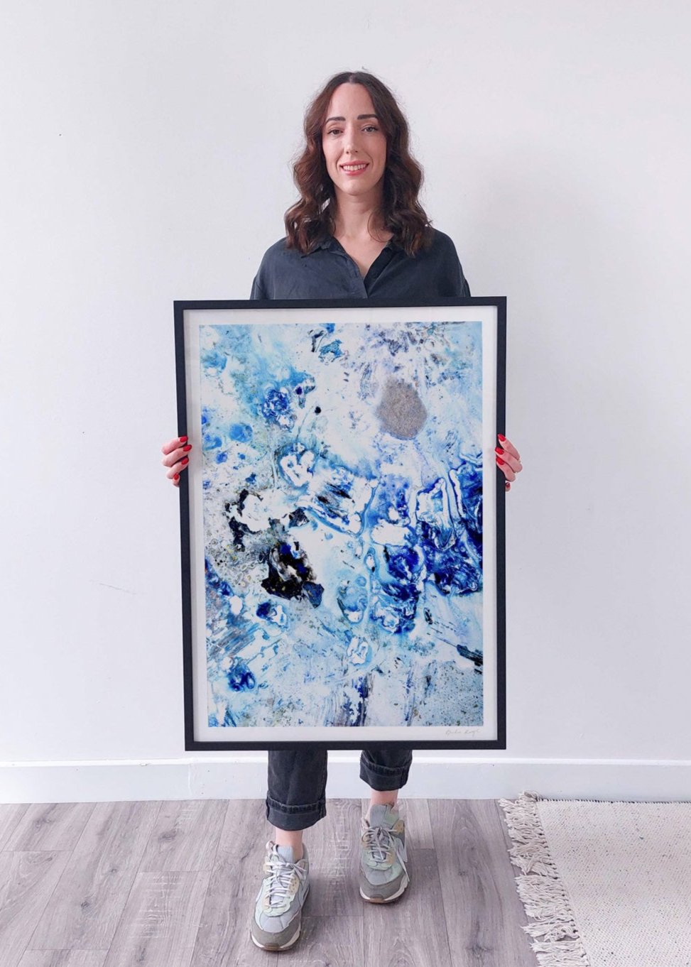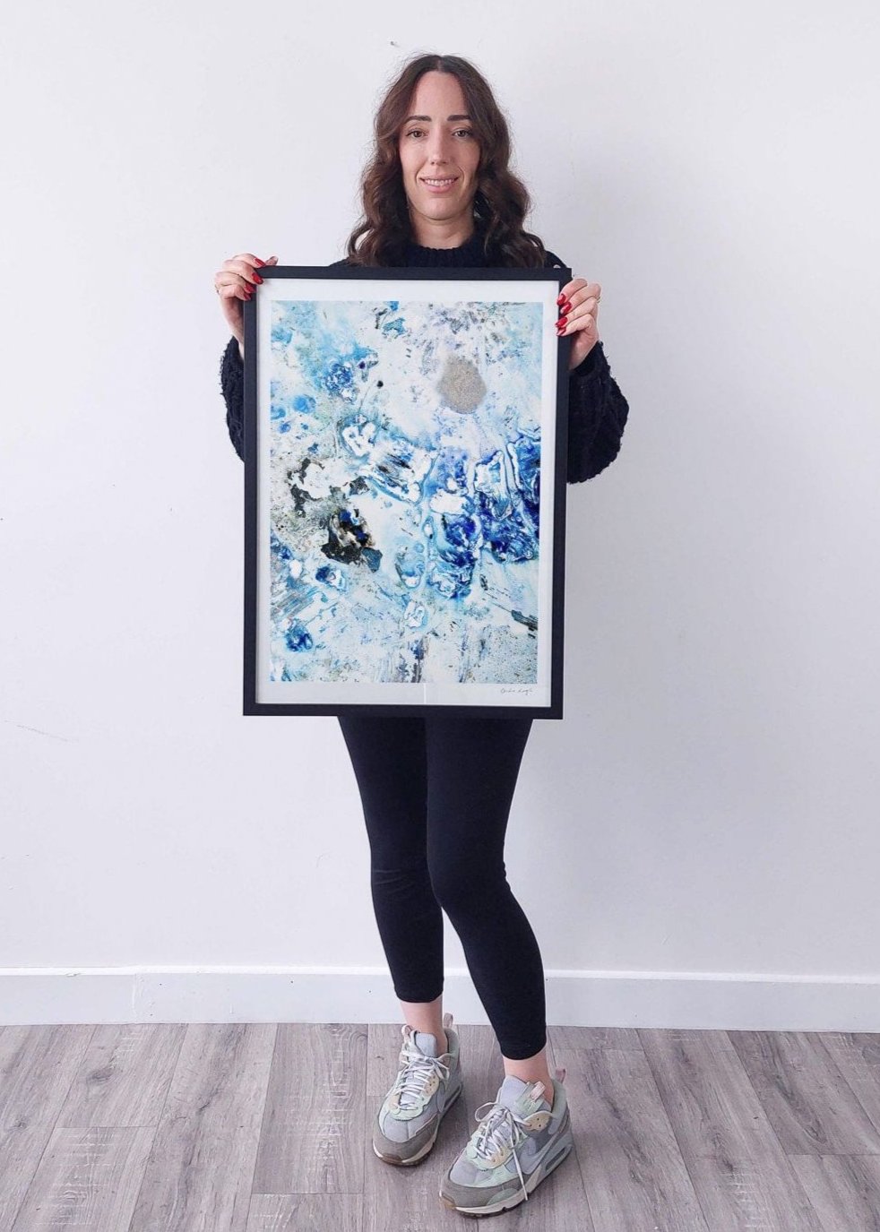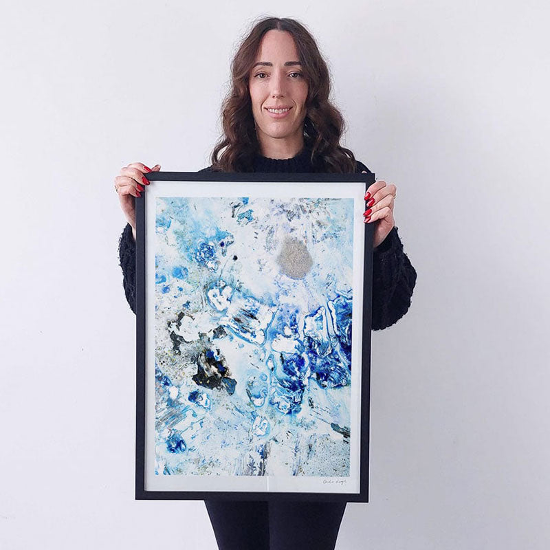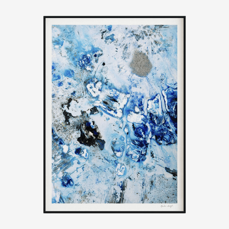 Elevate the elegance of your home with the Cruinne series. Cruinne is the Irish for 'Cosmos' — experience the depth of space, serene blue tones, and bold, dark brushstrokes in this framed Giclée print.