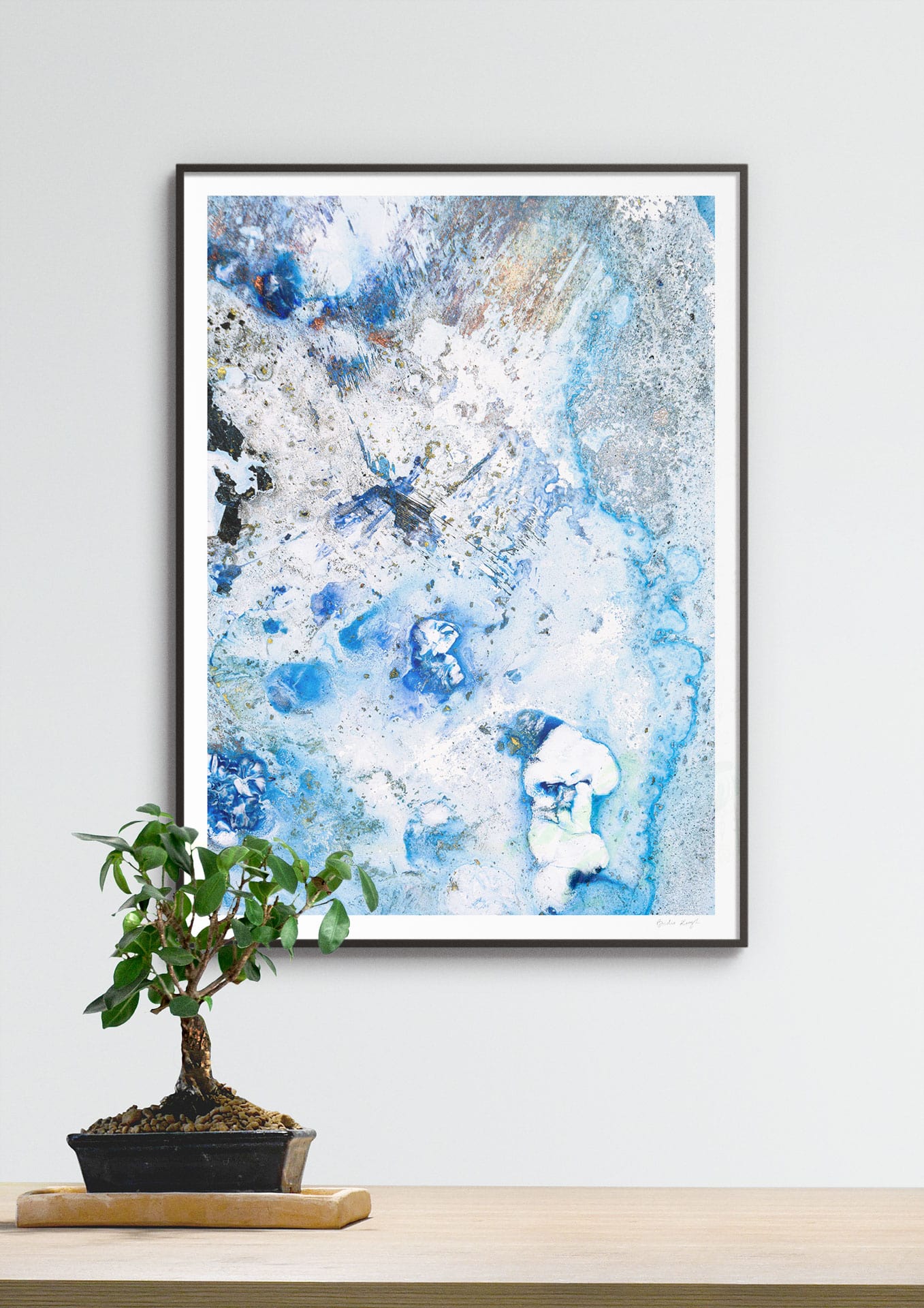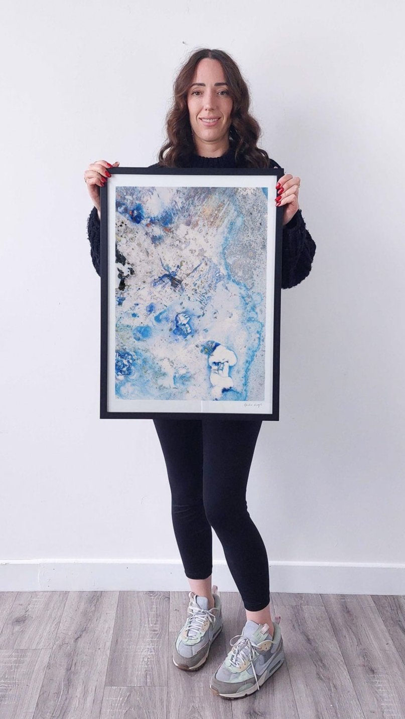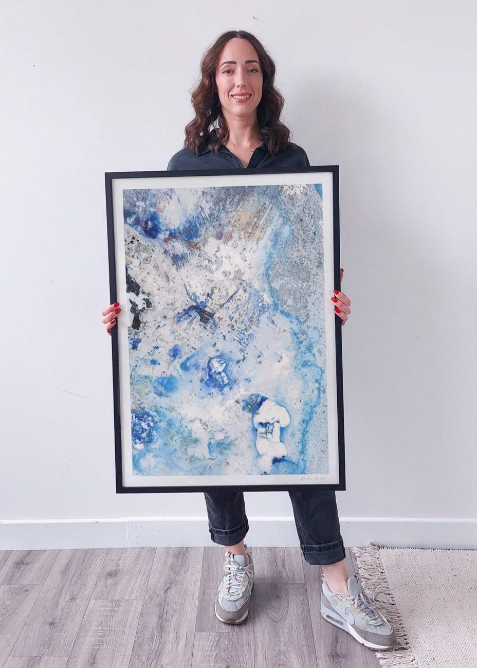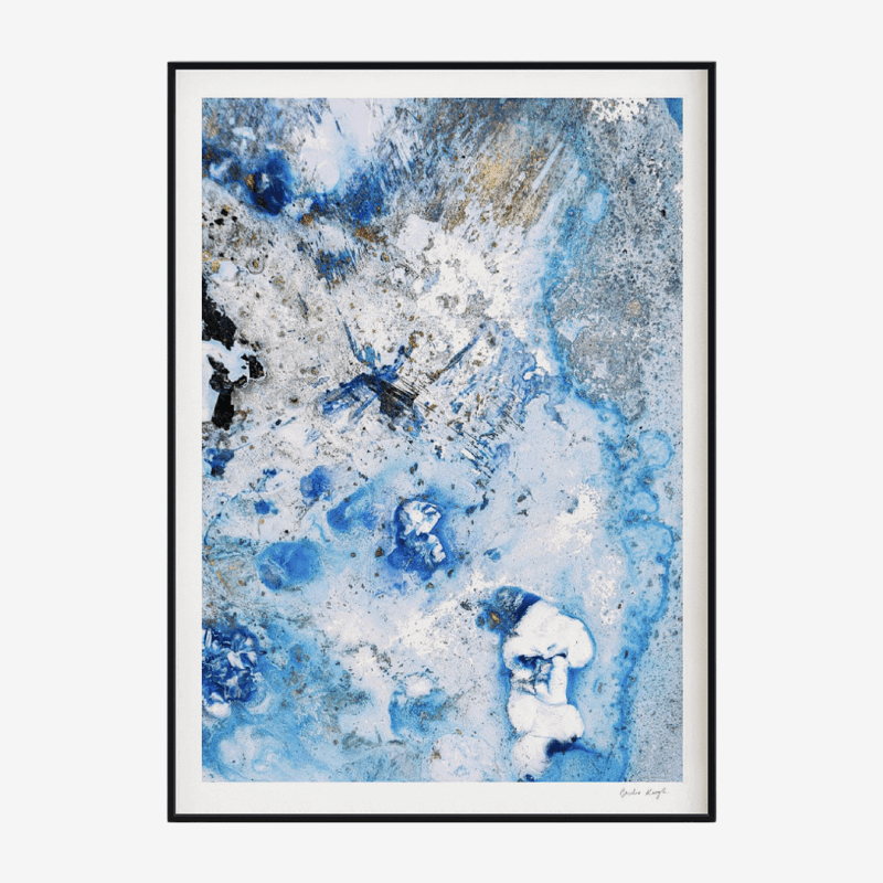 Elevate the elegance of your home with the Cruinne series. Cruinne is the Irish for 'Cosmos' — experience the depth of space, serene blue tones, and bold, dark brushstrokes in this framed Giclée print.
