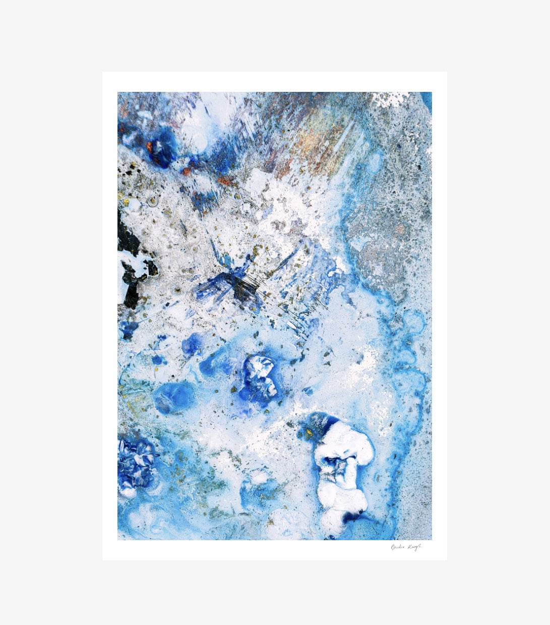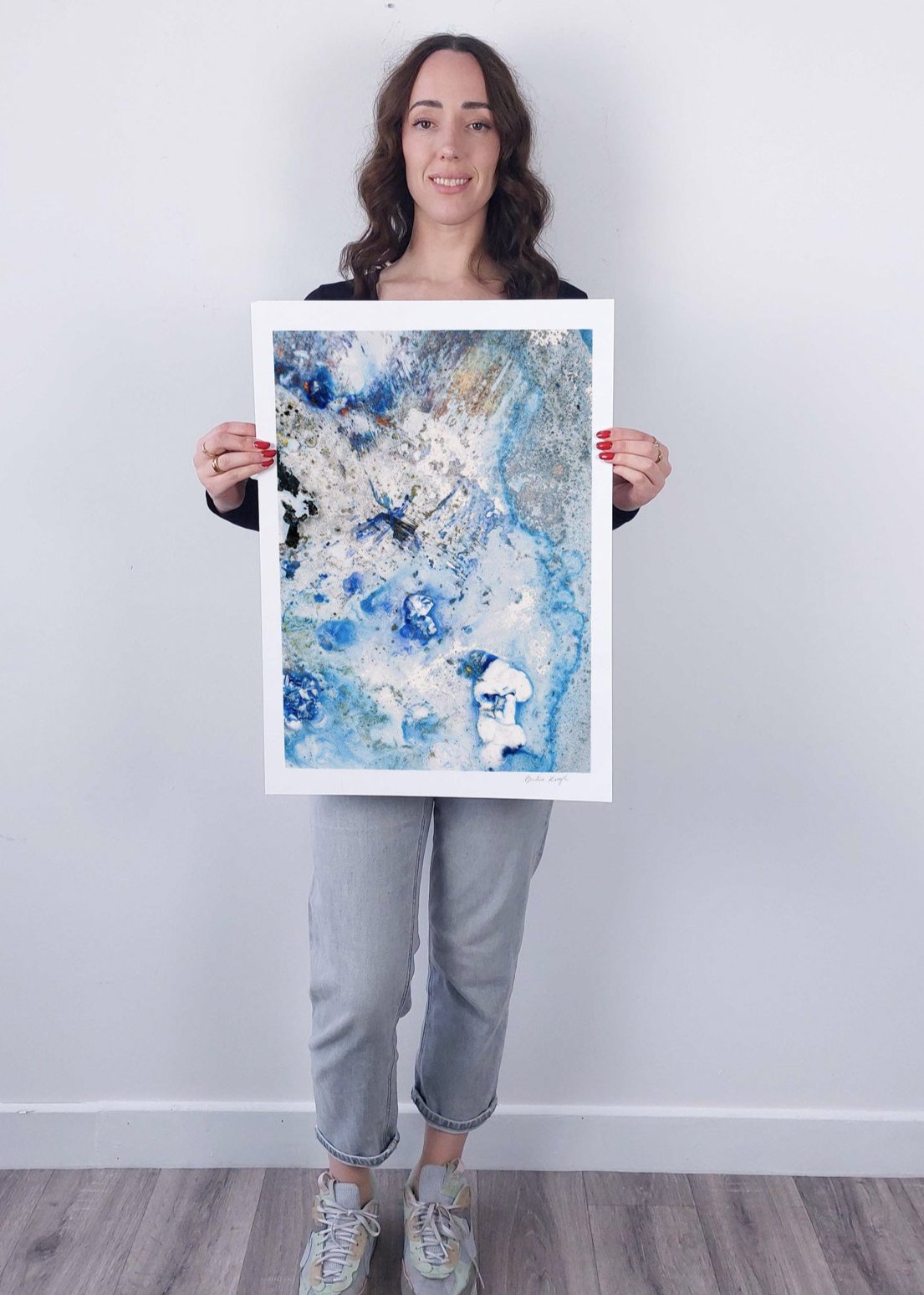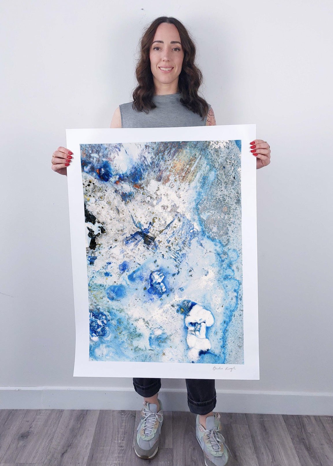 Elevate the elegance of your home with the Cruinne series. Cruinne is the Irish for 'Cosmos' — experience the depth of space, serene blue tones, and bold, dark brushstrokes in this framed Giclée print.