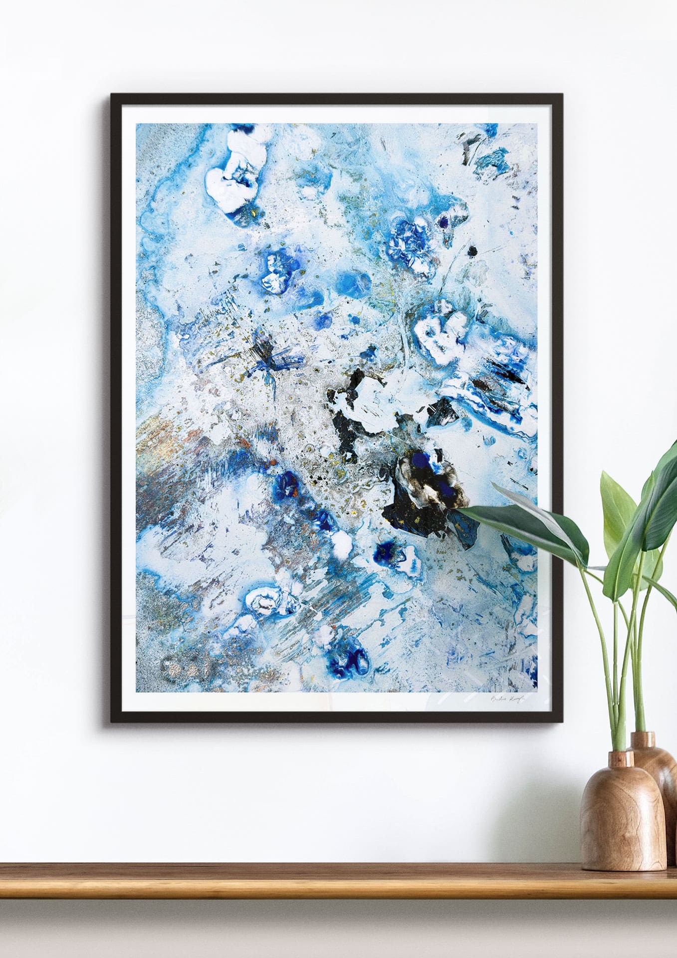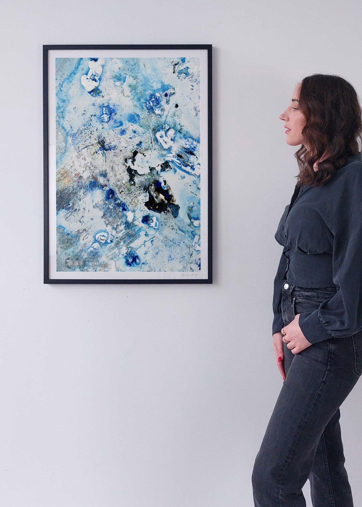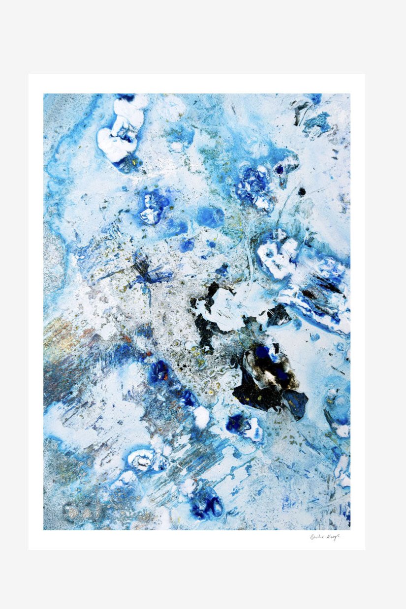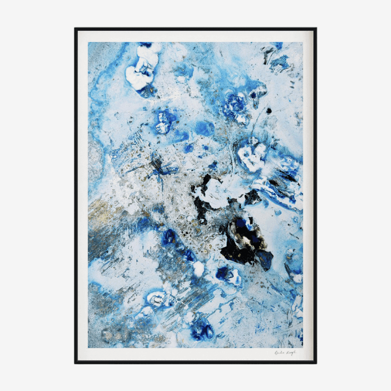 Elevate the elegance of your home with the Cruinne series. Cruinne is the Irish for 'Cosmos' — experience the depth of space, serene blue tones, and bold, dark brushstrokes in this framed Giclée print.