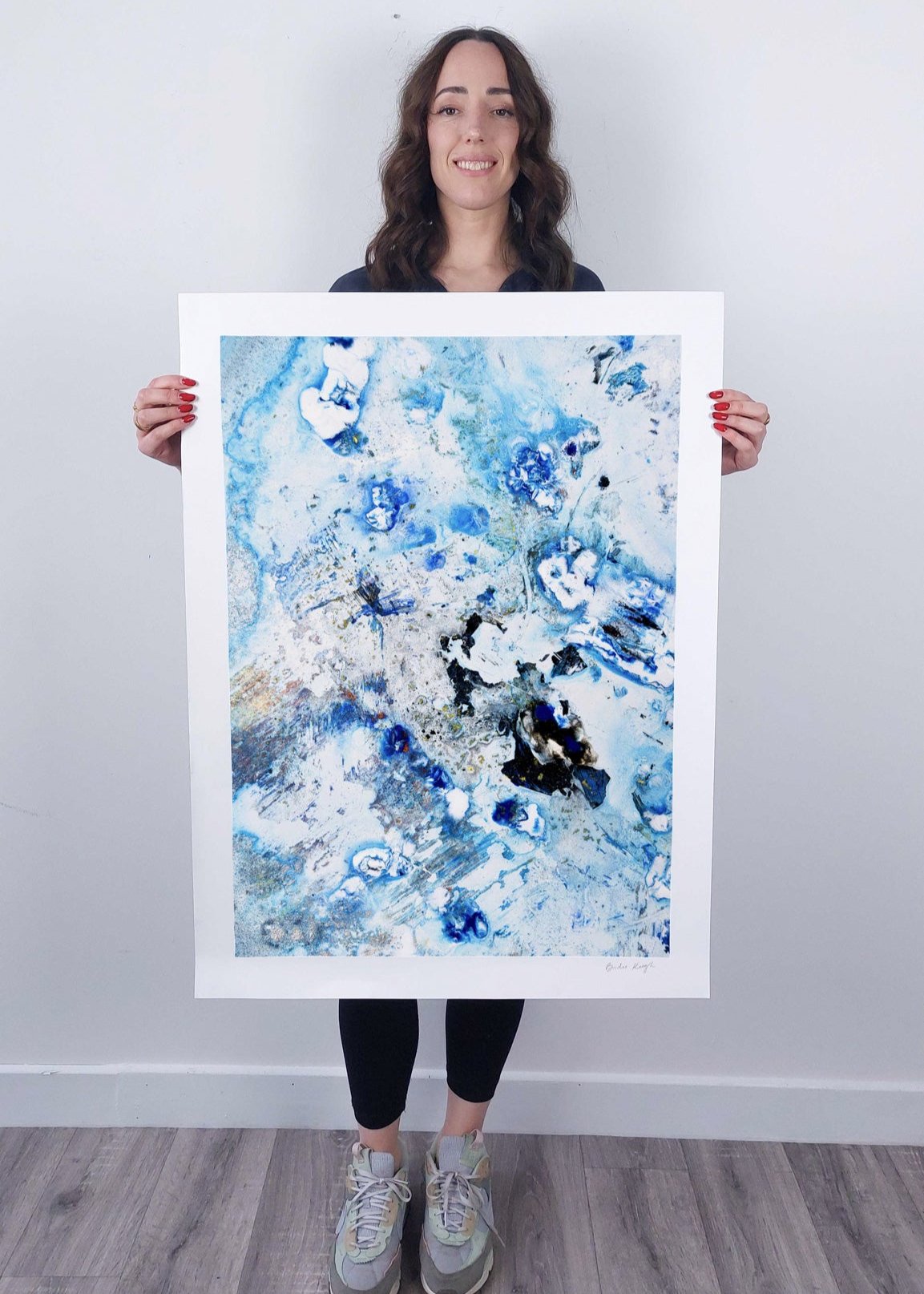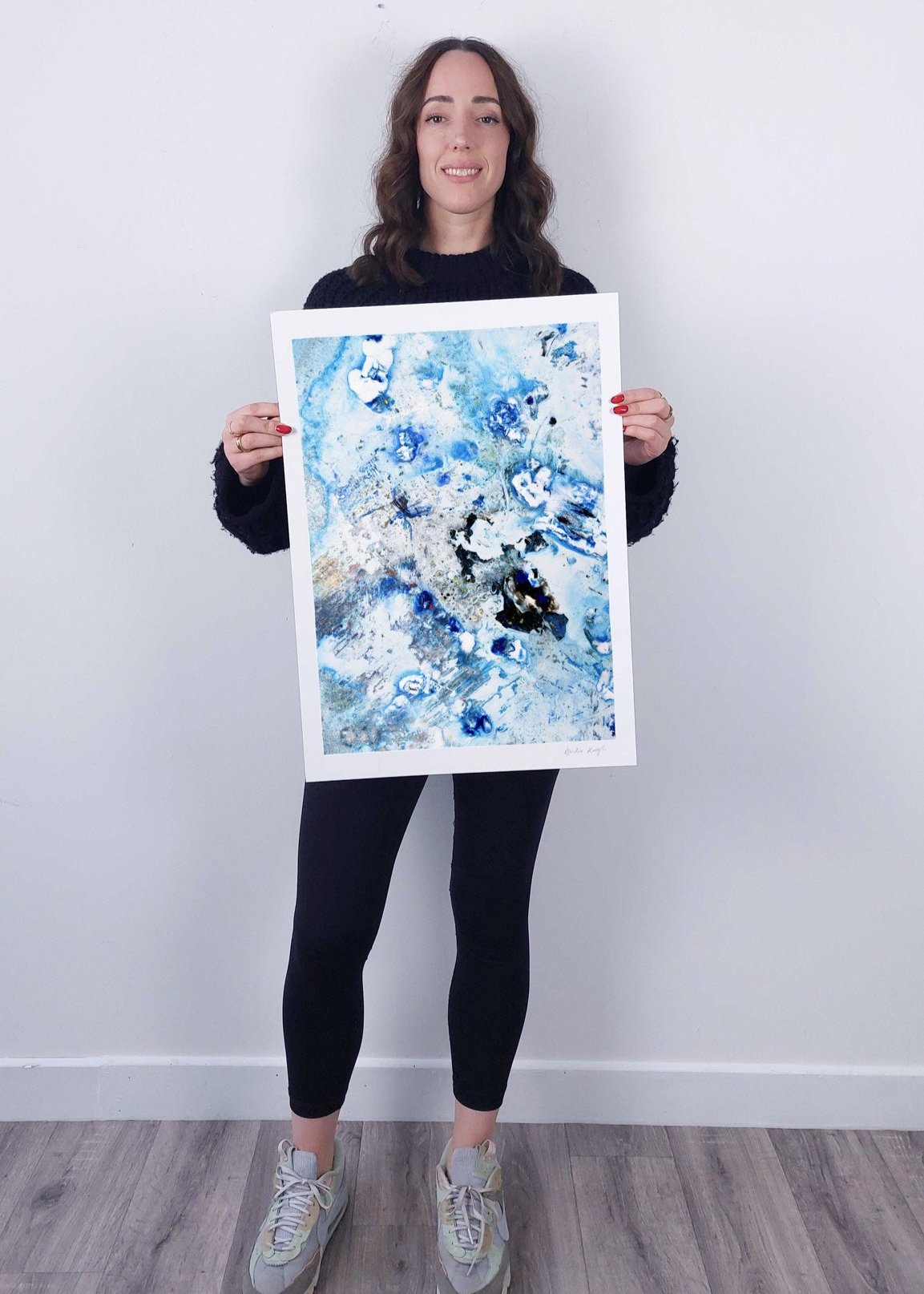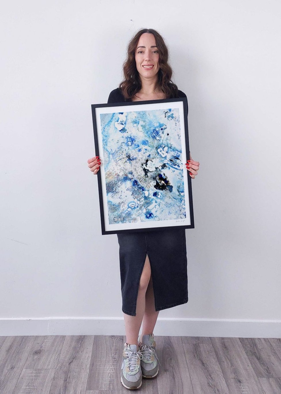 Elevate the elegance of your home with the Cruinne series. Cruinne is the Irish for 'Cosmos' — experience the depth of space, serene blue tones, and bold, dark brushstrokes in this framed Giclée print.