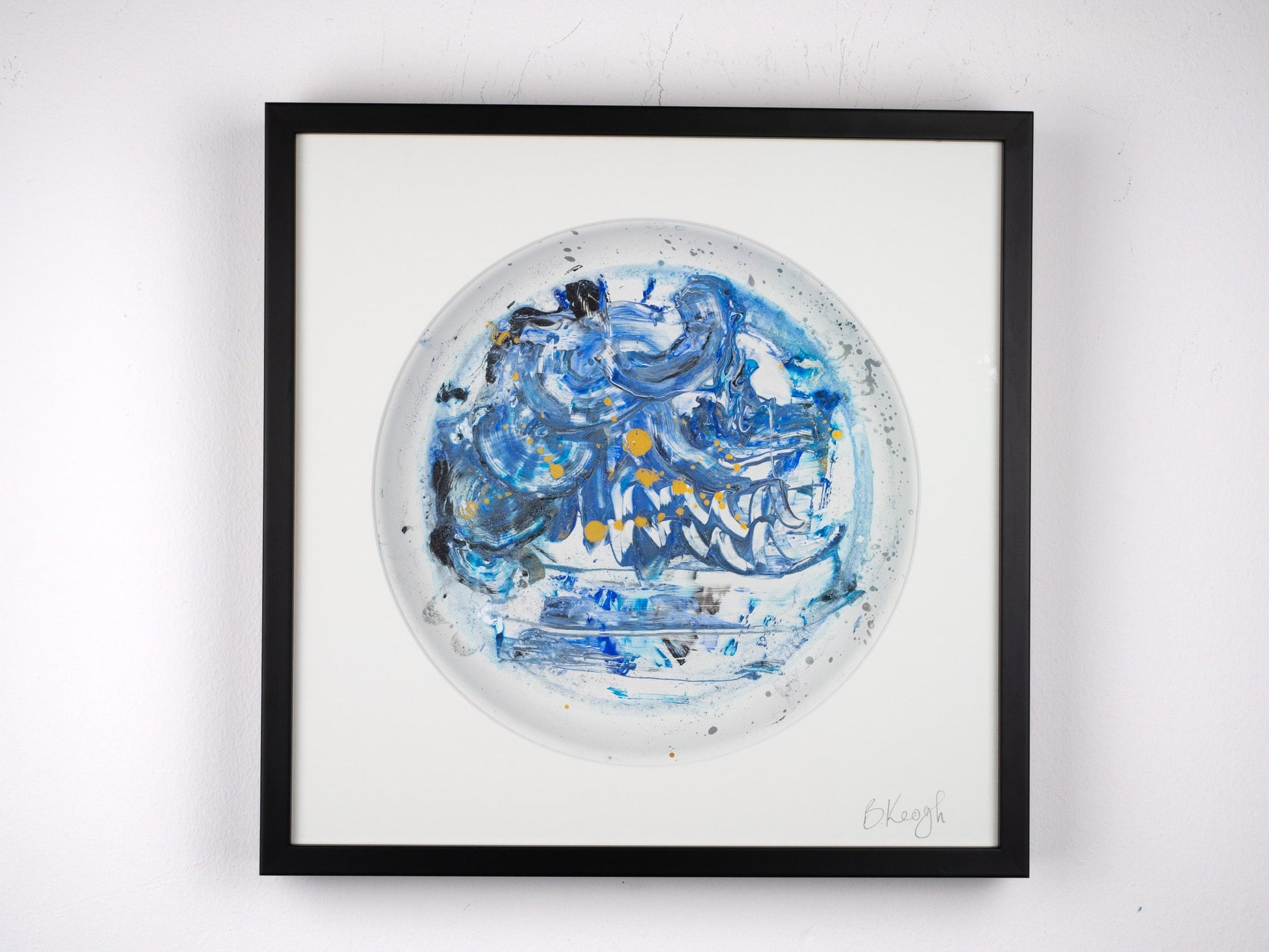 "Dótaí Órga" beckons you into a vibrant world of visual complexity—a joyful tapestry of shapes, lines, and colours that enthrals the senses. Let your gaze embark on a journey through its intricacies, where the bustling commotion is gently harmonised by the soothing hues of calming blues and sprinklings of delicate golden halos.